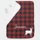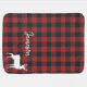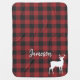 White deer against a textured red and black Buffalo check plaid. Personalize with your own name, or remove name if desired.