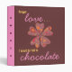 "Forget love; I want to fall in chocolate" is the quip on this fun personalized recipe binder. Perfect gift for a family member or friend who loves cookies, pies, candy, cakes...mmmm. What were we saying? Oh, yeah--creators give half their proceeds to kids' charities, so you "give twice" in choosing this as a gift. Be sure to replace our sample text on the back with your own. You can also change "sweets" on the spine to something else--or leave it as is :) Another color option: