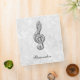 Elegant, glamorous personalised ring binder. Beautiful, dazzling trendy printed image silver and glitter diamonds bling jewels musical note on a chic white floral damask pattern background. A cute, classy, fashionable, stylish, pretty gift for her or any music lover. Women and girls will love this pretty case.
