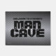 The background artwork depicts a cool metal diamond plate (tread plate) pattern. Above that it reads "Welcome to (Your Name)'s Man Cave" in a cool industrial font. Makes an awesome gift!