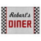 A vintage 50’s retro cutting board for anyone’s Diner aka kitchen with a red, black and white checker board border ; Robert’s can be changed to any name or word like Mom’s, Dad’s, Pop’s, Joe’s