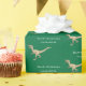Make your birthday gifts roar with Jurassic fun! This personalized kids name happy birthday dinosaur wrapping paper features a mischievous Velociraptor and modern white typography on a cool dark green background, a unique birthday gift wrap design. Perfect for kids, boys, and dinosaur lovers, this quirky raptor gift wrap adds Jurassic humor to every present.