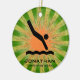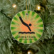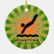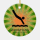Diver'sPersonalized Ornament Christmas 20XX. A diver in motion against a green and orange starburst background. All text customizable, front and back!