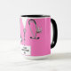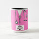 Creative doctor appreciation, birthday, graduation or holiday gift mug featuring pink hospital scrubs and funny Swiss Army knife. To personalize edit text to add name.