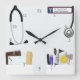 A personalized clock depicting medical gear in a medical professional's pockets. Fun, creative and unique. A great gift for the medical school graduate. Specific medical profession requests, please contact Night Owl's Menagerie. Original art by Night Owl's Menagerie, 2015.