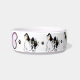 This is a heavy, durable bowl decorated with Tibbies of many colors, the perfect size for hungry/thirsty Tibs. The design is interesting and printing clear.