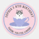 What is better than a kids tea party? A kids tea cup puppy party! These birthday thank you stickers feature an illustration of a Siberian Husky puppy with blue eyes in a tea cup. This light purple tea cup set has a white polka dot pattern, and the background is a light pink. Personalize these Kids Birthday Thank You Stickers with your own message and child’s name. The default message is “Sophia’s 8th Birthday” and “Thank You For Coming” and is in a gray font.