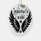 Lightweight, smooth, pure white ornament with nice sheen. Perfect size to be seen from across the room ... and to attract closer inspection! Price was great for ordering enough for the whole family! Clear, bold black design just as requested. Matches the order exactly. Just so nice!
