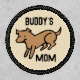 Fun round patch for a dog mom. The design includes a cute cartoon illustration of a playful dog. All of the text can be customized to create a unique personalized patch. You can replace the word mom with dad or toys for different uses.