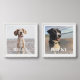 These Personalized Dog Name Photo Gift Keepsake Peel and Stick Photo Tiles come as a set of two (or one). Replace with your own photos and update the names. The bottom of each photo has a white filter to make the name pop out.