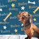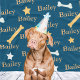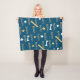 Dog blanket personalized with your pet's name on a blue background with stars and bones in white and yellow. Change the fonts and colors by clicking the button to edit the design.
