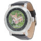 Personalize with your own dog's photograph on this cute, modern pet owner watch and customize with their name at the bottom. A beautiful custom wristwatch gift for a dog or cat owner to immortalize their love. Bordered in black with white numbers.
