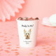 These Yorkie dog wedding paper cups are the a great way to include your pet in your wedding. This design is complete with the saying "Drinks On Me!", the dog's name. the bride and groom names, the date, and an adorable dog graphic. I have many other dog breeds available in my store.