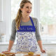 Delight the cook in your house with this Italian-inspired design featuring a pattern of Mediterranean food drawn in La Dolce Vita doodle style in blue on a white background. Near the top, the words "[Your Name's] Kitchen" or other text of your choice appear in editable white handwriting on a blue background.
