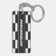 Personalized double sided checkered flag keychain. Personalize two sides. Auto speed racing design with dynamic typography.