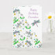 Pretty hand drawn personalized Birthday card with dragonflies and dandelions.