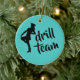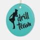 A drill team girl strikes a classic pose in a pique with the words "drill team" to the right in a pretty script font. Customize the back of the ornament to say your name, team, rank or anything else! Don't like the background color? You can change it too!
