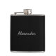 Personalized drink flask with elegant script text. Customizable black background color. Cute gift idea for manly men. Personalize it with a name or monogram initials. Alcohol / Drinking present that you can customize.