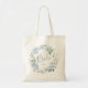 Modern bride script with watercolor floral wreath in dusty blue and sage green, elegant and romantic, great personalized bride tote bag for bride to be, great bridal shower gifts to store all the essentials for the wedding day.