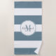 Personalized Dusty Blue Stripes Hand Lettered Beach Towel