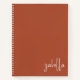 This modern minimalist notebook features your name in a white handwritten script calligraphy on a burnt orange background. The typography is stylishly placed in the lower right corner. Perfect for office, dorm, back to school, or business.