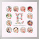 This adorable photo collage keepsake poster for a baby girl has a whimsical, fairytale design. It includes a large letter "E" monogram initial made up of flowers and leaves, and surrounded by twelve photos, one photo for each of the first twelve months of your little one's life. The photos have hand-drawn green frames and a small number indicating which month the photo corresponds to. Customize by adding your child's name, birth date, and photos.
