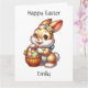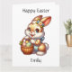 Personalized children's Easter card. Inside page is a coloring page. Cute cartoon Easter bunny with basket.
