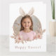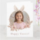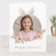 Send warm Easter wishes with this personalized Easter bunny photo greeting card. Featuring a soft pastel floral wreath design on the front and a thoughtfully written message inside, this card becomes a meaningful keepsake for Easter celebrations.