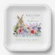 Greet your guests in charming spring style with this personalized “Welcome” Easter bunny egg hunt paper plate featuring a cute watercolor rabbit in a colorful wildflower meadow. The fresh garden design blends soft meadow blooms with a clean, modern minimalist aesthetic that’s perfect for a spring garden party, Easter brunch, or coordinated egg hunt celebration.