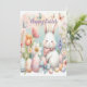 Celebrate Easter with this charming watercolor-style greeting card featuring a playful bunny, colorful eggs, and delicate spring flowers. The front design includes customizable text, allowing you to add the recipient's name for a personal touch. Perfect for spreading joy and sharing heartfelt wishes this Easter season!