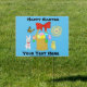 Our cute bunny and his chick friend have a big Easter basket and a message for your family and friends. Personalize the text and add your family name etc. Also good for Easter Hunt's use this sign to display where your event is being held.