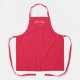 Great color and even though I ordered the kid size, it covers well enough to use during the holidays. I am not a big woman and prefer a shorter apron. I stand 5"6" and the length of the garment goes to mid-thigh. The tie straps fit well at my waist and even though there is no neck strap adjustment, the opening is plenty big enough. I am happy with the size and fit. I am sharing my apron with my 10 year old grandson, too! The color is vibrant and looks good, as shown on the website. The stitching looks strong and reinforced. Photographed is front side and back side of the apron, reinforced straps and coloring. My phone camera may not be the best at showing the details.