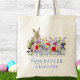 Personalized Egg Hunt Hoppy Easter Bunny Floral Tote Bag