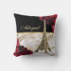 Personalized Eiffel Tower Gold, Black Marble Rose Throw Pillow