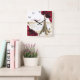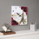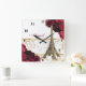 This beautiful Eiffel Tower wall clock design features a golden graphic of the Eiffel Tower on a white and gold marble background with red roses. Personalize with a name!