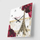 Personalized Eiffel Tower Gold, White Marble Rose Square Wall Clock