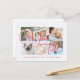 Personalized 6 family photos Universal eyecatching red Greetings Postcards featuring a stylish photo collage with 6 customized images, your greetings message in elegant chic handwritten script font, your name, date, year, message on the back in a modern and simple sans serif font.