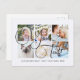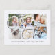 Personalized 6 family photos Universal Greetings Postcards featuring a stylish photo collage with 6 customized images, your greetings message in elegant chic handwritten script font, your name, date, year, message on the back in a modern and simple sans serif font.