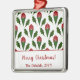 Personalized Elegant Abstract Red Roses & Holly Metal Ornament
