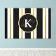Personalized Elegant Black & Gold Stripes Monogram Canvas Print