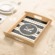Personalized Elegant Black & Gold Stripes Monogram Serving Tray