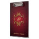 Personalized Elegant Black Red Damask Monogram Classic Template Professional Clipboard. Perfect for Real Estate Agents, Accountants, Realtors, Brokers, Attorneys, Lawyers, Doctors, Corporate Professionals, Stylists, Architects, Engineers, Directors, Managers, all Professions.