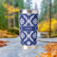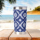 Personalized Elegant Blue Chic White Floral Coffee Insulated Tumble showcases a sleek, abstract design with dark blue and white geometric pattern. The intricate floral and geometric elements add a touch of sophistication, making this tumbler a stylish choice for any occasion. Whether for hot coffee or cold drinks, it combines elegance with functionality. The personalized name on the tumbler adds a unique and thoughtful touch, making it a perfect everyday accessory or birthday gift for her. Fully customizable to suit your needs.