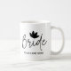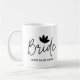 Personalized Elegant Bride Weddings Coffee Mug. Fully Customizable. Stylish, modern Bridal Coffee Mugs! Get coffee mugs for the Bridal Party, a great accessory for those wedding day essentials! This Wedding Bride coffee mug features word ''Bride'' in elegant stylish signature script style with cute black floral on the top. Underneath this design is the name which you can easily customize with your bride's name or initials.
