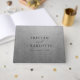 Elegant classic typography on a silver background. Cherish the comments and sentiments from friends and family, preserved in your beautifully crafted wedding guest book. Simple elegance.