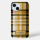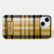 Personalized iPhone case in elegant classic tan and taupe plaid design with monogram