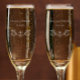 Add the couple's names and wedding date for beautiful keepsake champagne flute glasses. Personalize these elegant, stylish etched champagne glasses for your special occasion. Simple modern script is etched into the glass and can be edited. The pretty swirls with a diamond in the middle is my own sketch created for you. This romantic flower bud swirl can be removed if desired. This would make a lovely keepsake 50th or 60th anniversary gift or thank you party favor for anniversary party guests. It would also be great for an engagement or proposal or wedding. I hope you enjoy my unique design, made with love for you.
