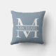 Personalized Elegant Dusty Blue Monogram and Name Throw Pillow