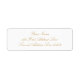 Create your own elegant gold and white custom return address label. Add your name and address in faux gold tone to this white sticker. The stylish calligraphy script can be customized for your purposes. This return address label matches the gold and white wedding invitation in this collection. See my simple romantic monogrammed wedding invitations, envelopes and belly bands for a lovely custom mailing set.