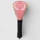 Custom gold club driver head cover in elegant, modern, minimalist, chic design. Personalized golf driver head cover with laurel wreath, two crossed golf clubs, and golf ball. Personalized golf driver head cover with your logo, name, text, year, etc. Elegant gold golf driver head cover personalized gift for golf club, golfer, golf player, team, coach. Pink and White custom personalized golf head cover